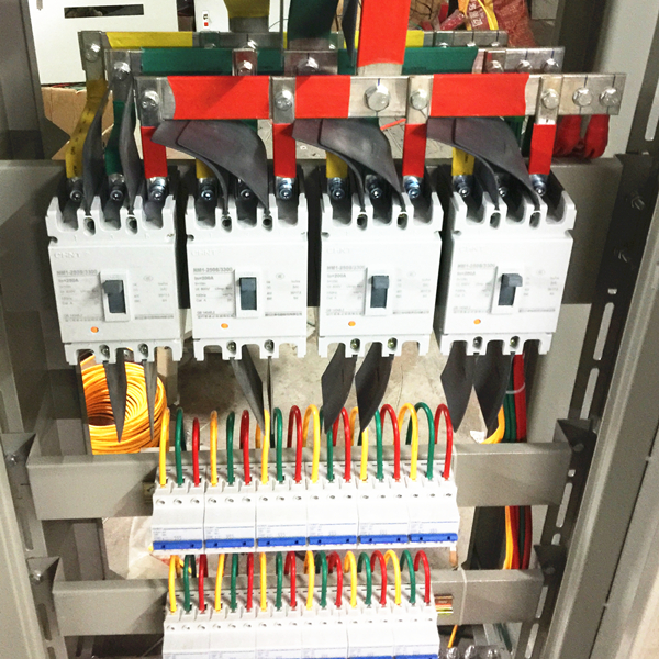5)備注配電: 購(gòu)方在靠近安裝控制柜處事先裝好電源,電源要事先配上空氣開(kāi)關(guān),接入功率要求220A以上。進(jìn)負(fù)荷線要求三相五線,規(guī)格為:三相電線使用35mm?的國(guó)標(biāo)銅芯線,零線4mm,地線6mm